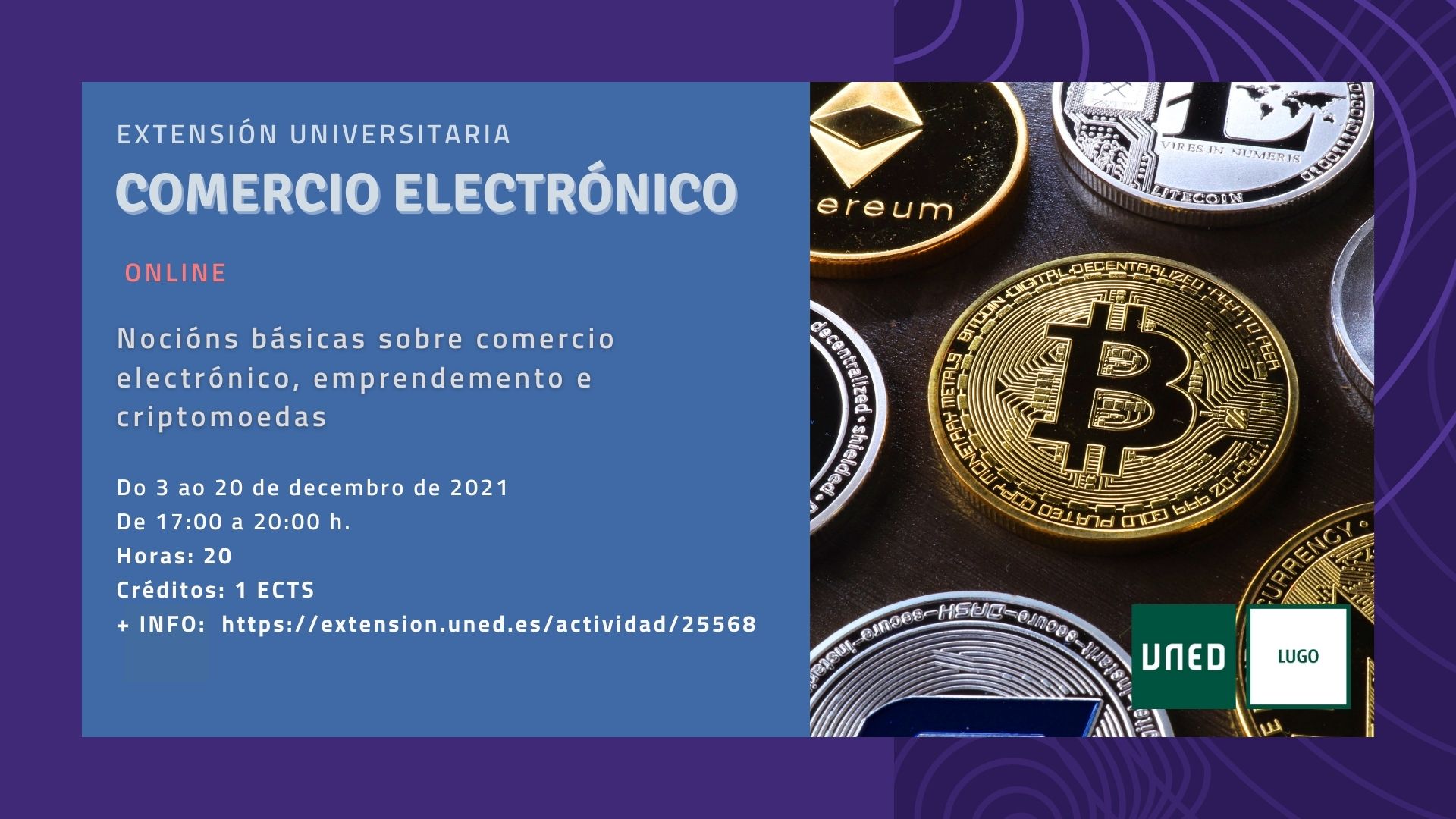 La realización de este curso permitirá al alumnado asistente hacer un recorrido actual, versátil y útil dentro del mundo de las e-commerce como modelo empresarial y de negocio. Conocer cada uno de los entresijos del proceso de la venta online, consejos útiles para una compra segura en internet, la normativa que la rige y los nuevos nichos de negocio surgidos como fruto de la creación de plataformas conocidas como las Marketplace. Así mismo, veremos aspectos de uso cotidiano a los que nos enfrentamos como compradores/as online y ejemplos de éxito de esta línea de venta en España. Además, serán adquiridas nociones imprescindibles y eficaces sobre emprendimiento, y ciberseguridad. Por último, haremos un recorrido por cada uno de los aspectos que giran en torno al mundo de las criptomonedas y su creciente irrupción dentro del mundo financiero, llegando a comprender puesta en marcha de un modelo de negocio y porqué suena cada vez con más fuerza, la posibilidad de invertir y comprar con dinero virtual.
