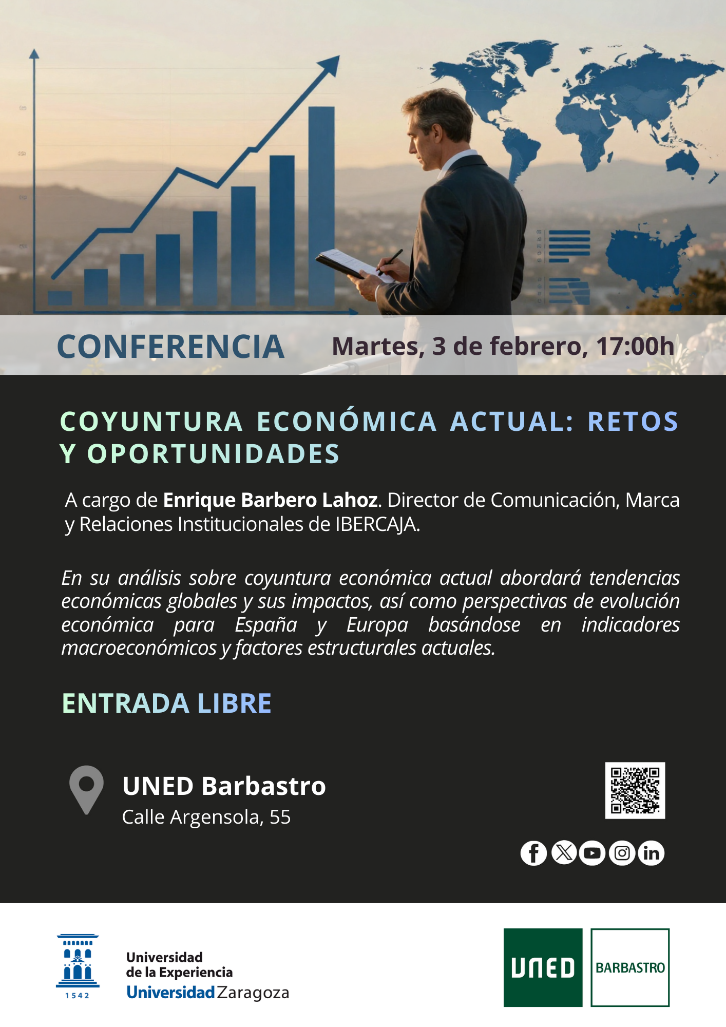 Esta conferencia ofrece un análisis riguroso y accesible de la situación económica actual, poniendo el foco no solo en los desafíos existentes, sino también en las oportunidades que se abren para empresas, instituciones y ciudadanía en un entorno económico en transformación.